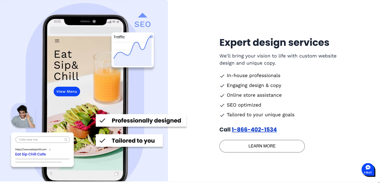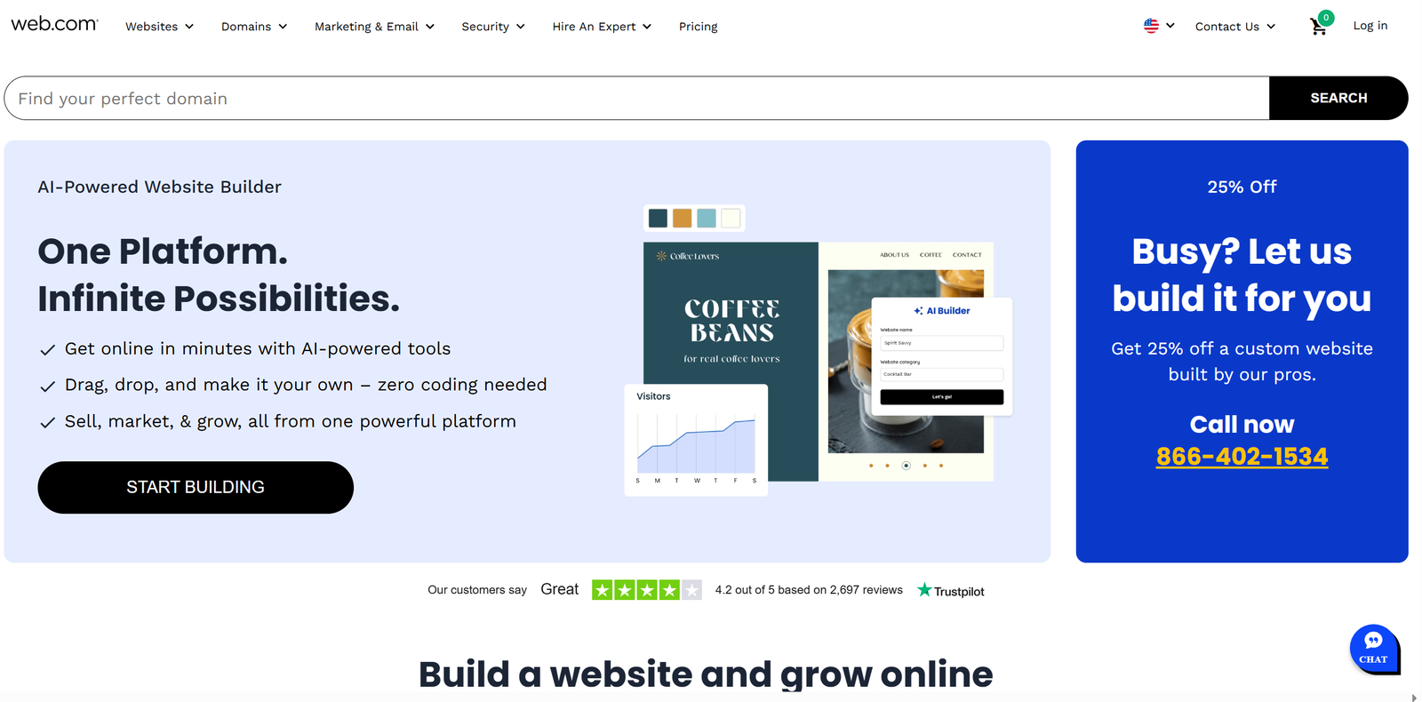 Web.com serves as both a website builder and a hosting provider, offering a full range of services designed to help businesses build, launch, and manage their online presence. From website creation with an award-winning website builder to web hosting, domain registration, and a wide range of digital marketing tools, Web.com provides a complete solution for online business needs.